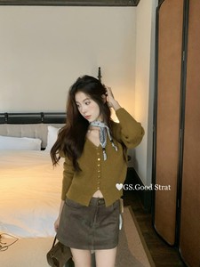 GS.GOOD START秋冬复古设计感金扣泡泡袖v领针织衫G7187(配丝巾)