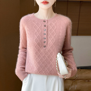 2025秋冬新款圆领针织羊毛衫女宽松长袖毛衣女士女装气质大码上衣