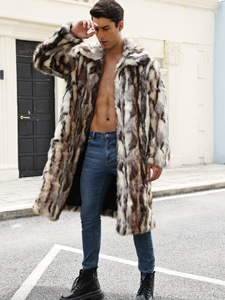 F1011欧美跨境男士仿皮草翻领外套外贸秋冬新款撞色保暖大衣男