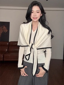 杏白色 披肩+针织衫