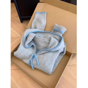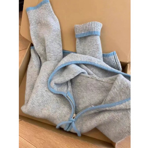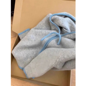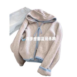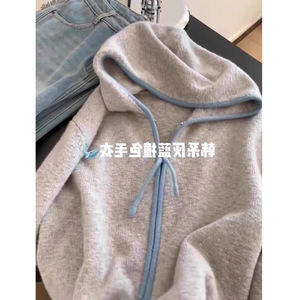蓝色双重包边~浅灰色双拉链连帽外套重磅上衣女2025秋上新款长袖
