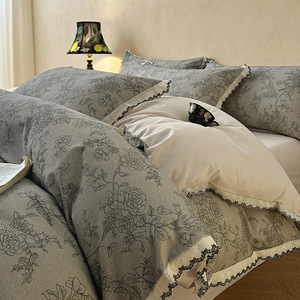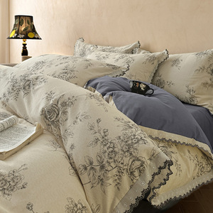 法式复古风全棉床上四件套2025新款加厚纯棉磨毛被套罩床单三件套