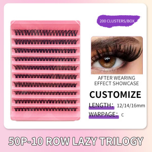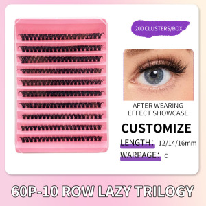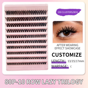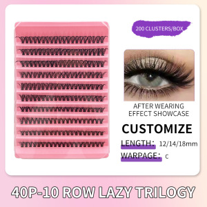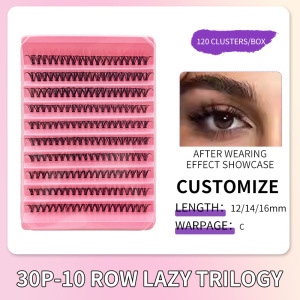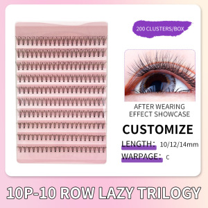 跨境爆款10排大容量P系列假睫毛分段式单簇仿真眼睫毛浓密卷翘睫