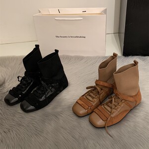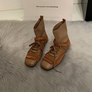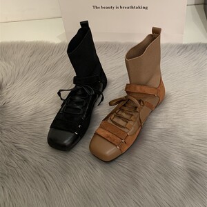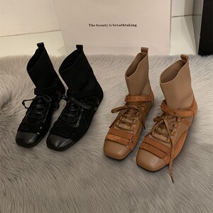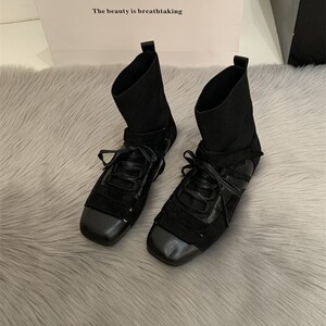 小众设计弹力袜靴女内增高方头系带皮带瘦瘦短靴2025新款春秋单靴