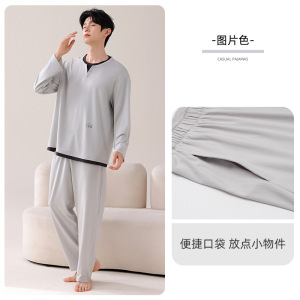 2025新款青少年睡衣男春秋季莫代尔棉长袖宽松休闲可外穿家居服潮