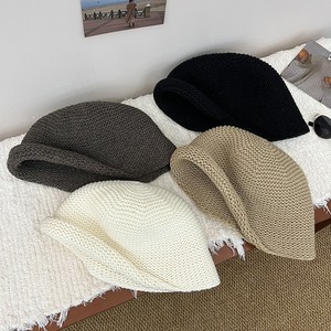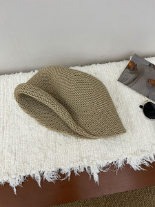 出口韩国羊毛针织卷边水桶帽子女秋冬复古咖色渔夫帽大头围盆帽潮