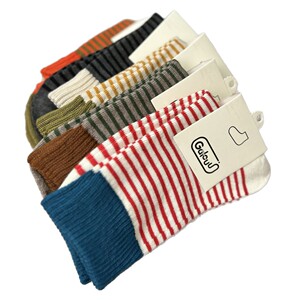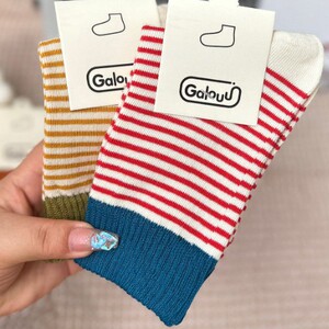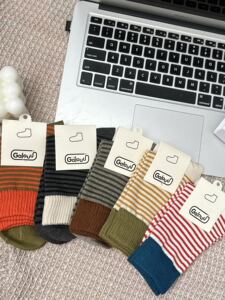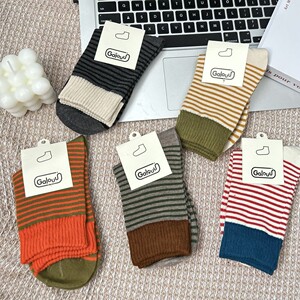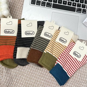 正品Galouu东大门美拉德色系条纹中筒袜秋冬新款女士撞色拼接彩色