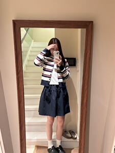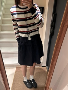条纹针织开衫毛衣女2025秋季新款撞色别致韩系小个子短款外套上衣