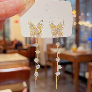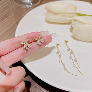 925银针金色镂空蝴蝶耳饰轻奢高级感超仙两戴耳钉气质流苏耳环女