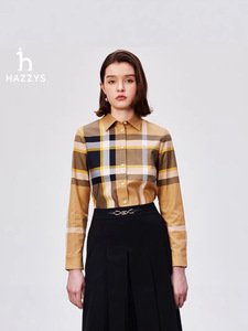 Hazzys/哈吉斯25秋季新款女士商务休闲格子元素衬衫一件代发