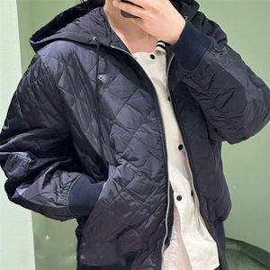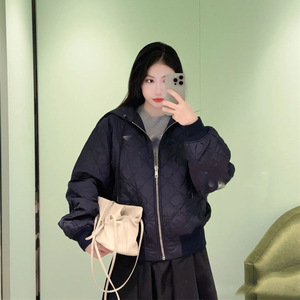 25秋冬新款南油高定Pra简约休闲百搭经典菱格纹连帽棉服外套