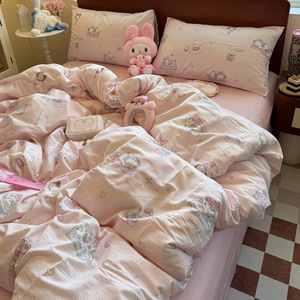卡通碎花小兔纯棉四件套少女心全棉被套床单学生宿舍床品三件套