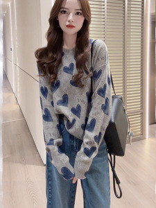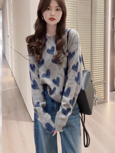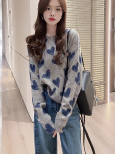 慵懒风气质宽松氛围感针织衫设计感减龄套头爱心字母毛衣上衣女