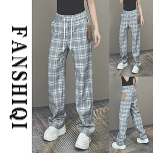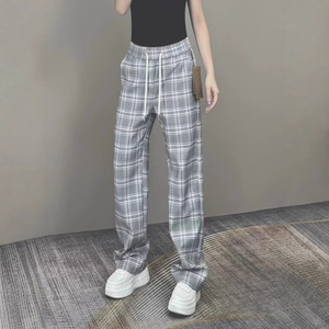 秋季新款黑白格子直筒裤百搭亲肤舒适垂感时尚商务宽松洋气休闲裤