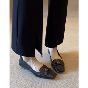 现货版~方头法式山茶花蝴蝶结坡跟玛丽珍浅口通勤气质复古平底鞋