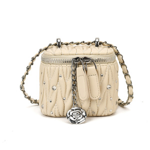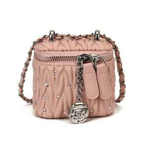 新款儿童洋气小香风粘钻爆闪山茶花迷你亲子款斜跨小挎盒子包包女