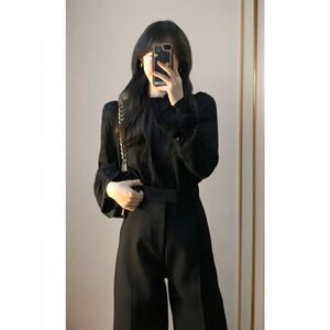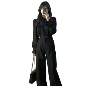 早秋穿搭套装女新款酷飒拽姐黑色常规袖西装裤高级感时尚两件套