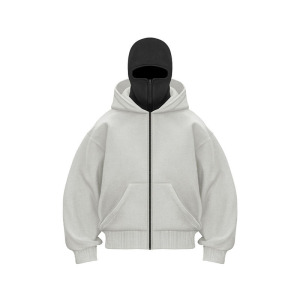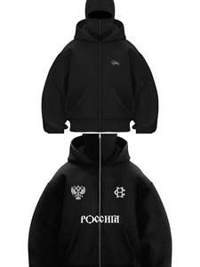 跨境潮牌双帽DIY秋冬ins悍匪拉链连帽卫衣宽松独特设计情侣款上衣