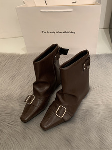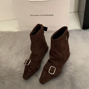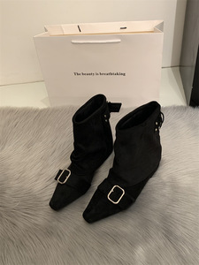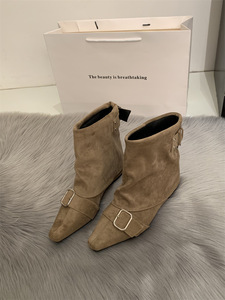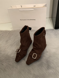 内增高复古绒面西部牛仔短靴女靴子2025春秋季新款单靴方头马丁靴