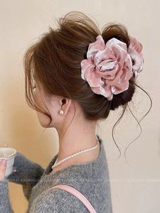 韩系早秋丝绒玫瑰花朵抓夹高级纯色鲨鱼夹发饰后脑勺发抓发夹头饰