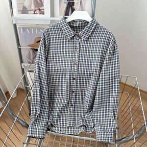松弛感复古磨毛蓝色格子衬衫女宽松休闲韩系慵懒风宽松外套女上衣