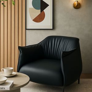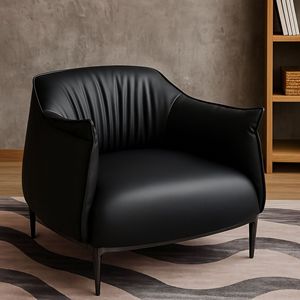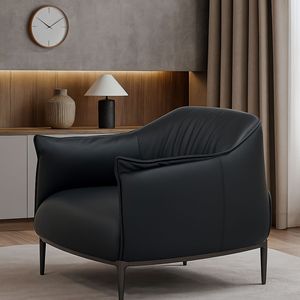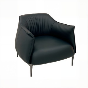 意式极简单人沙发椅 家用客厅酒店会所商务洽谈接待 轻奢真皮扶手