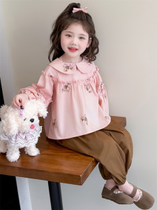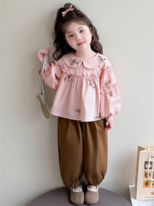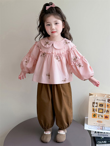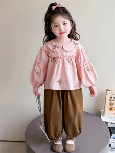 女童套装春秋装2-25新款儿童韩版时髦小女孩衬衫束脚裤甜美两件套