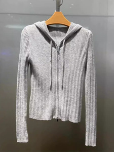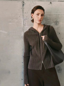 M**檬女装2025冬季新款时尚百搭连帽拉链针织开衫女上衣5GA134484