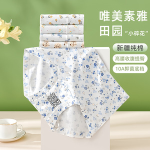 法式田园风碎花内裤女纯棉A类棉10A抑菌加长裆女士三角裤高腰大码