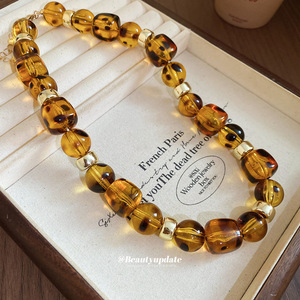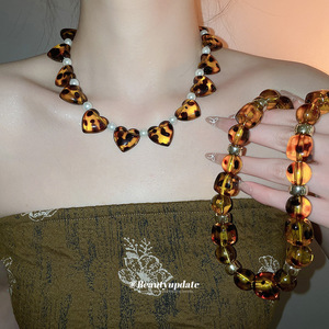 不锈钢亚克力爱心水晶珍珠串珠项链美拉德风锁骨链小众设计感项饰