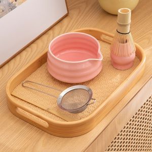 日式跨境新款粉色带嘴陶瓷抹茶碗茶具配件茶筅立套组宋代点茶茶道