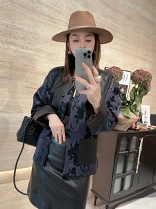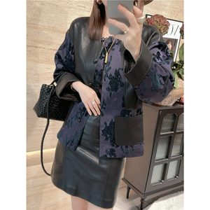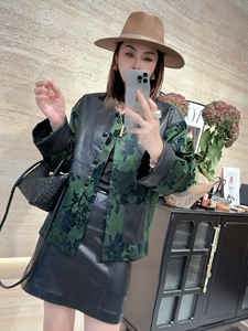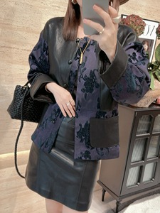 新中式国风提花拼接PU皮外套女2025秋季新款复古气质宽松显瘦上衣