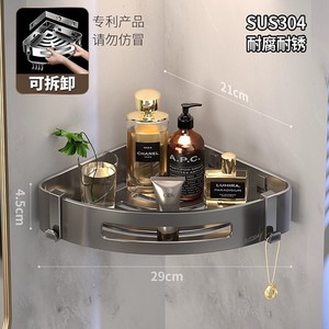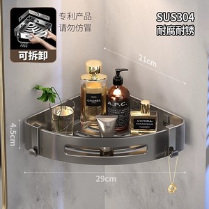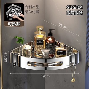 304不锈钢浴室置物架加大加厚免打孔卫生间转角三角架厕所三角篮