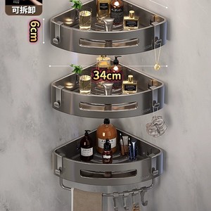 304不锈钢【1.8mm旗舰加厚加大款】枪灰色-可拆卸三层三角置物架+毛巾杆带杆10钩