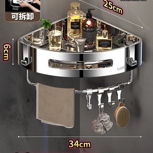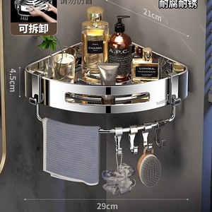 304不锈钢【1.8mm旗舰加厚加大款】镜面色-可拆卸三层三角置物架+毛巾杆带杆10钩