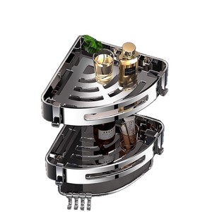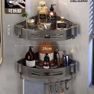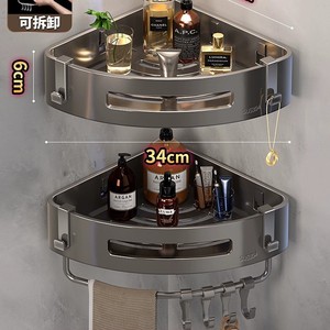 304不锈钢【1.8mm升级加厚款】枪灰色-可拆卸双层三角置物架+毛巾杆带杆8钩