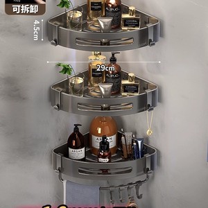 304不锈钢【1.8mm升级加厚款】枪灰色-可拆卸三层三角置物架+毛巾杆带杆10钩