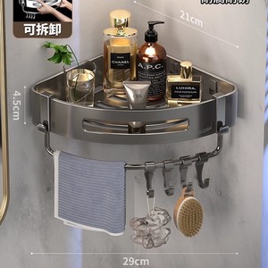 304不锈钢【1.8mm升级加厚款】枪灰色-可拆卸单层三角置物架+毛巾杆带杆6钩