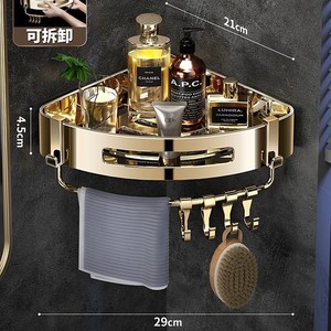 304不锈钢【1.8mm升级加厚款】玫瑰金-可拆卸单层三角置物架+毛巾杆带杆6钩