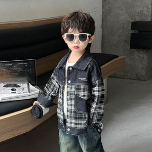 8874男童牛仔外套春秋儿童格子衬衫2025新款开衫宝宝韩版长袖衣服