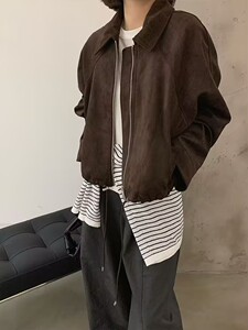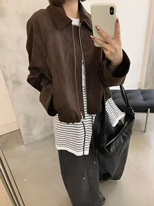 港味2025秋季新款防麂皮绒外套女设计感下摆抽绳翻领短款时尚上衣