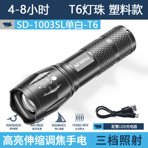 SD-1003变焦手电-塑料款【T6灯珠;内置电池1200MAH】
