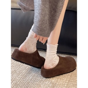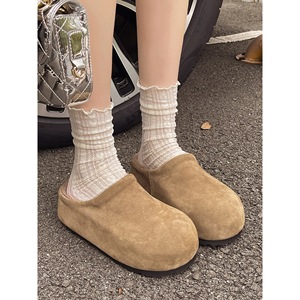 黑色复古防滑厚底半拖勃肯鞋女2025新款秋季增高软底包头棉拖鞋子