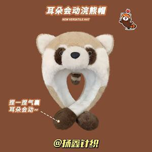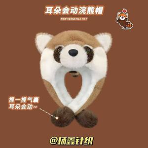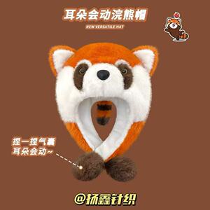 宝宝帽子小浣熊套头帽儿童防寒加绒滑雪帽男童女童加绒保暖大熊猫