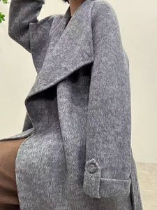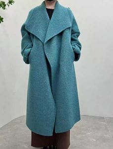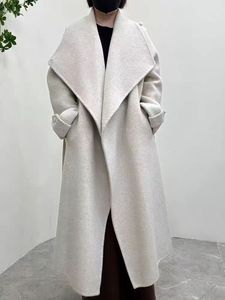 韩系浴袍款西装领大口袋双面羊毛大衣女高级感赫本风羊毛呢外套女