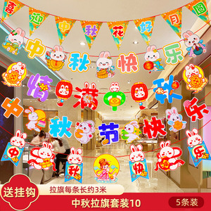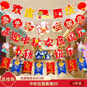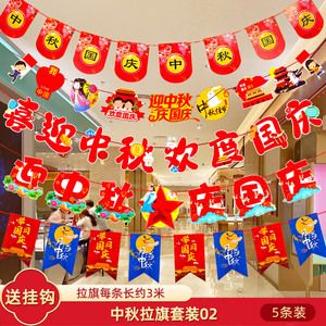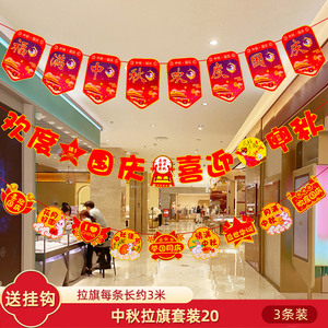 十一国庆节中秋装饰品拉旗场景氛围布置珠宝店铺挂件拉花吊旗挂饰