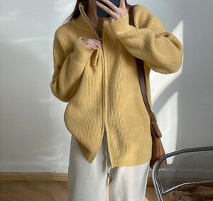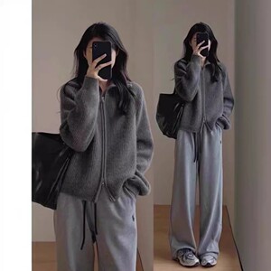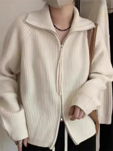 韩系翻领开衫毛衣外套女秋冬2025新款宽松慵懒风加厚针织上衣服