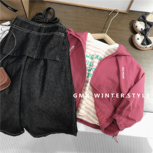 女童外套春秋新款儿童时髦中小童宽松冲锋衣洋气百搭女宝连帽外贸
