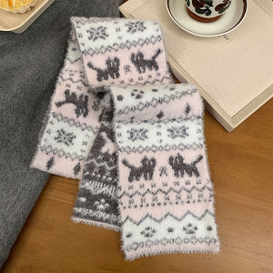 费尔岛风氛围感双面毛绒针织围巾2025新款保暖加厚冬可爱毛线围脖