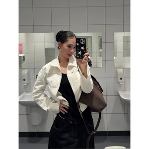 F383 美式复古铆钉短款夹克高级质感翻领外套女辣妹休闲百搭上衣
